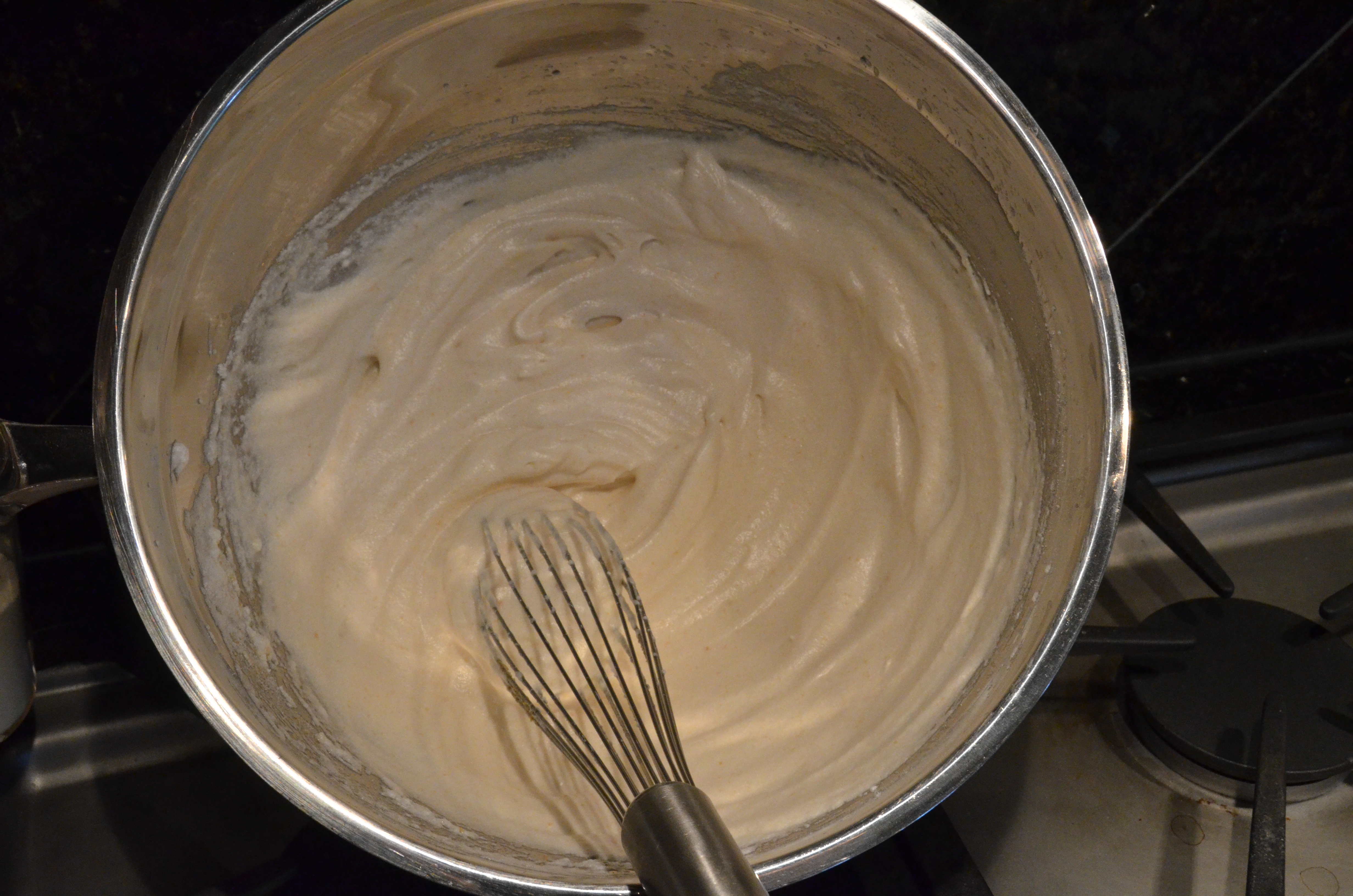 1) Place Egg Whites in a big bowl. BEAT egg whites until stiff. (I had to do this by hand because my electric mixer is out of commission…not easy. My forearms got so pumped up – thoughts of Popeye came to mind.